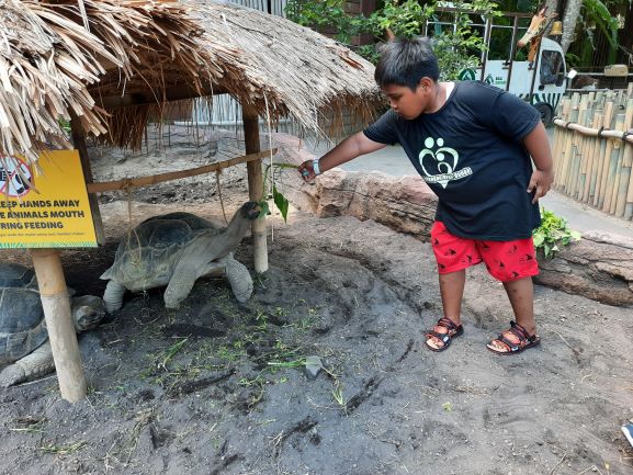 Turun dari shuttle bus kita langsung ketemu lobby Barong. Di tempat ini kita bisa berinteraksi dengan ikan. Kalau jam kunjungan kita tepat, kita bisa lihat pertunjukan Piranha Feeding. Sayangnya kedatangan kami tidak pas. We missed this show dan akhirnya manyun tuh Haikal hehehe. Dari lobby barong, fisik kita mulai diuji. Kita musti jalan untuk menuju ke lokasi pertunjukan pertunjukan lainnya. Just check the schedule dan map nya ya. Pastikan kalian ada di lokasi pertunjukan on time supaya bisa dapat tempat kalau berkunjung pada saat peak season. Di dalam juga ada safari tour untuk melihat binatang dari berbagai belahan dunia. Tapi it just sight seeing dari dalam bus tanpa bisa berinteraksi langsung.  Buat yang ingin berinteraksi dengan binatang secara langsung, ada beberapa spot disediakan untuk animal feeding.  Kita hanya perlu untuk membeli makanana binatang yang disediakan pengelola. Setelah itu kita bisa memberikan makanannya langsung ke binatangnya.