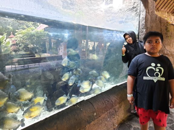 Predator fun park masih masuk Jatim Park Group dan relative baru jika dibandingkan dengan Eco Green Park. Di Predator fun park ini kita bisa melihat berbagai jenis buaya dengan berbagai ukuran, beberapa ikan predator seperti Arapaima dan Piranha dan juga berbagai jenis ular. Yang paling disukai Haikal adalah atraksi mancing buaya dan mancing ikan arapaima hehehe. Cukup beli umpan yang sudah disediakan bersama pancingannya dan kita siap untuk bermain-main dengan ikan predator dan buaya.