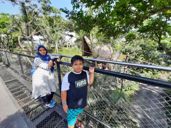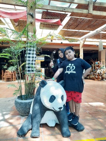 Masih dalam rangkaian jalan-jalan ke Bali sebelumnya. Ini adalah hari ke-4 kami di Pulau dewata Bali. Kali ini kami memutuskan untuk mengajak Haikal ke Bali Safari. Ini adalah taman safari ke-3 yang pernah kami kunjungi. Mulai dari Taman Safari Bogor, Taman Safari Prigen, dan sekarang Bali Safari yang masih satu group. Kunjungan ke Bali Safari kali ini adalah kunjungan kami yang kedua. Sebelumnya kami pernah ke Bali Safari ketika Haikal masih TK. Saat itu Haikal masih agak-agak takut kalau berinteraksi langsung dengan binatang. Kali ini kami mencoba lagi datang kesini. Kami mengambil paket tiket Bali Safari yang plus makan siang dan pertunjukan Bali Agung. Tapi sayangnya karena kecapekan keling-keliling, kami tidak bisa menikmati pertunjukan Bali Agungnya. So sad, tapi kami tetap bersyukur ternyata haikal happy berinteraksi langsung dengan berbagai binatang.
