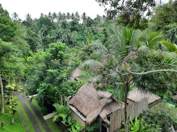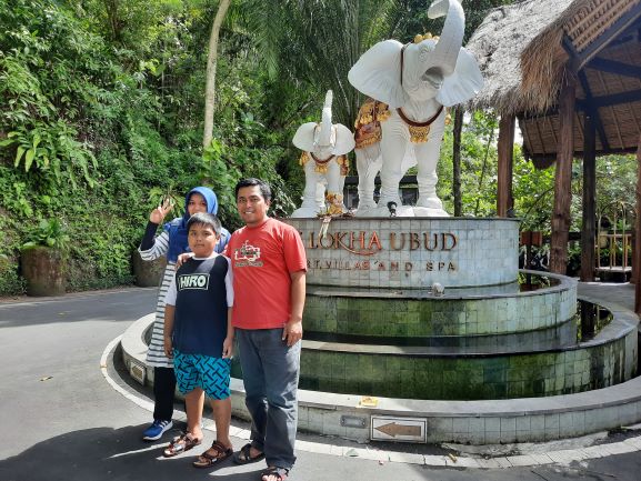 Main di pantai sudah dan perut pun kenyang pula. Tiba waktunya mengistirahatkan badan dan tujuan kami adalah The Lokha Ubud resort. Resort bintang ini berada di areal persawahan dan bukit yang hijau. Jalan di depan resort cukup sempit sehingga cukup sulit apabila ada simpangan mobil. Namun demikian pemandangan indah akan dapat kita jumpai disekitar resort. Sampai di depan resort kita disambut patung gajah besar yang menjadi ikon resort ini. Suasana resort yang asri dan sejuk membuat istirahat kami cukup tenang dan nyaman. Di pagi hari kami baru menyadari bahwa resort ini ternyata dekat dengan Bukit Campuhan. Tempat ini terkenal dengan Ridge Walk nya. Di pagi dan sore hari kita akan menemui wisatawan domestik dan asing berjalan kaki di depan resort menuju bukit Campuhan.