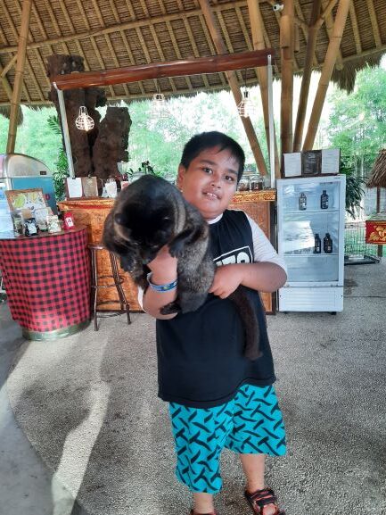 Dan satu yang menarik perhatian Haikal di tempat ini adalah Kopi Luwak yang hadir dengan Luwak Aslinya hehehe. Kita bisa berfoto gratis dengan luwak yang sudah jinak dengan cukup membeli  kopi. Here are the pictures.