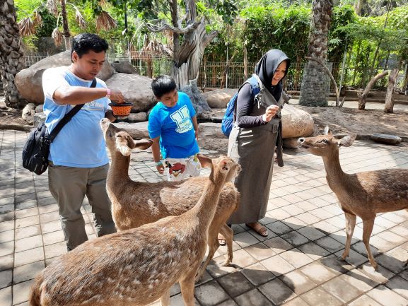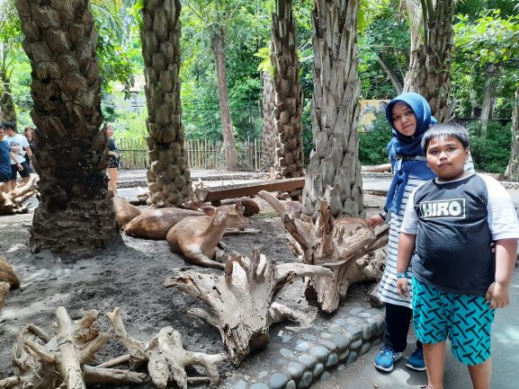 Puas berkeliling Bali Bird Park, kami selanjutnya berpetualang di Bali Zoo. Tetap ingin menikmati eloknya flora dan fauna dengan view yang berbeda. Hanya diperlukan waktu 10 menit perjalanan dari Bali Bird Park ke Bali Zoo.  Berjalan memasuki Bali zoo kita langsung akan disambut beberapa Rusa jinak di sekeliling kita. Kita bisa membeli sayuran untuk feeding rusa yang kita temui. Berbagai jenis koleksi binatang ada di sini. Atraksi binatang dengan pawangnya pun disajikan untuk pengunjung dengan jadwal yang sudah ditetapkan. Lihat jadwal show di brosur yang diberikan saat kita membeli tiket. Jangan lupa siapkan fisik untuk mengelilingi tempat ini hehehe. Di Bali Zoo ini ada dua blok terpisah. Blok pertama dan kedua bisa dijangkau dengan shuttle yang disediakan secara free oleh pengelola. Pilihan jenis tiket yang akan kita beli juga bermacam-macam. Kita tinggal menyesuaikan dengan budget dan planning kunjungan masing-masing.