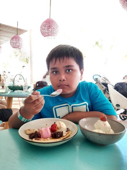 Ini adalah hari ketiga kami di Bali. Hari ini kami berencana naik kapal selam Bali Odyssey di Amuk Bay. Butuh waktu sekitar 1.5 jam dari The Lokha Ubud tempat menginap kami. Pagi-pagi kami sudah packing untuk sekalian check out. Rencananya kami akan pindah hotel setelah acara naik kapal selam. Perjalanan pun dimulai.  Ini sebenarnya di luar itinerary yang kami susun sebelum ke Bali hehehe. Pas di hotel kami buka-buka google dan menemukan acara menyelam ini. Karena sepertinya menarik dan Haikal pun senang, ya jadilah kami keluar dari rencana awal. Berdasarkan info di websitenya, ada 2x penyelaman sehari. Karena banyak peminatnya, ada baiknya pre-book tiketnya dahulu. Kami memesan tiket via Balitop Holiday. Pelayanan ramah dan harga cukup bersahabat. Cukup beruntung kami masih dapat tiket walaupun baru pesan malam sebelumnya. Dengan 630rb per orang sudah full dengan free barbeque lunch yang menunya sangat beragam. Tak terasa sampailah kami di Amuk Bay tempat kapal selam Bali Odyssey bersandar.  Pantainya cukup bersih, airnya tenang .
