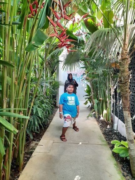 Selesai menikmati makan siang, kami berencana menuju hotel di daerah Tanjung Benoa Bali. Pilihan tempat menginap kami adalah Nikko Hotel . Dalam perjalanan ke Nikko Hotel, tidak sengaja kami menemukan tempat menarik dari google. Tempatnya kebetulan sejalur dengan perjalanan kami dari Amuk Bay ke Tanjung Benoa. Tempat itu adalah Balitopia & Flamingo Beach . Tempatnya cukup indah. Kita bisa menikmati berbagai flora dan fauna di taman Balitopia. Bisa feeding rusa, dan juga melihat berbagai jenis kupu-kupu yang cantik.