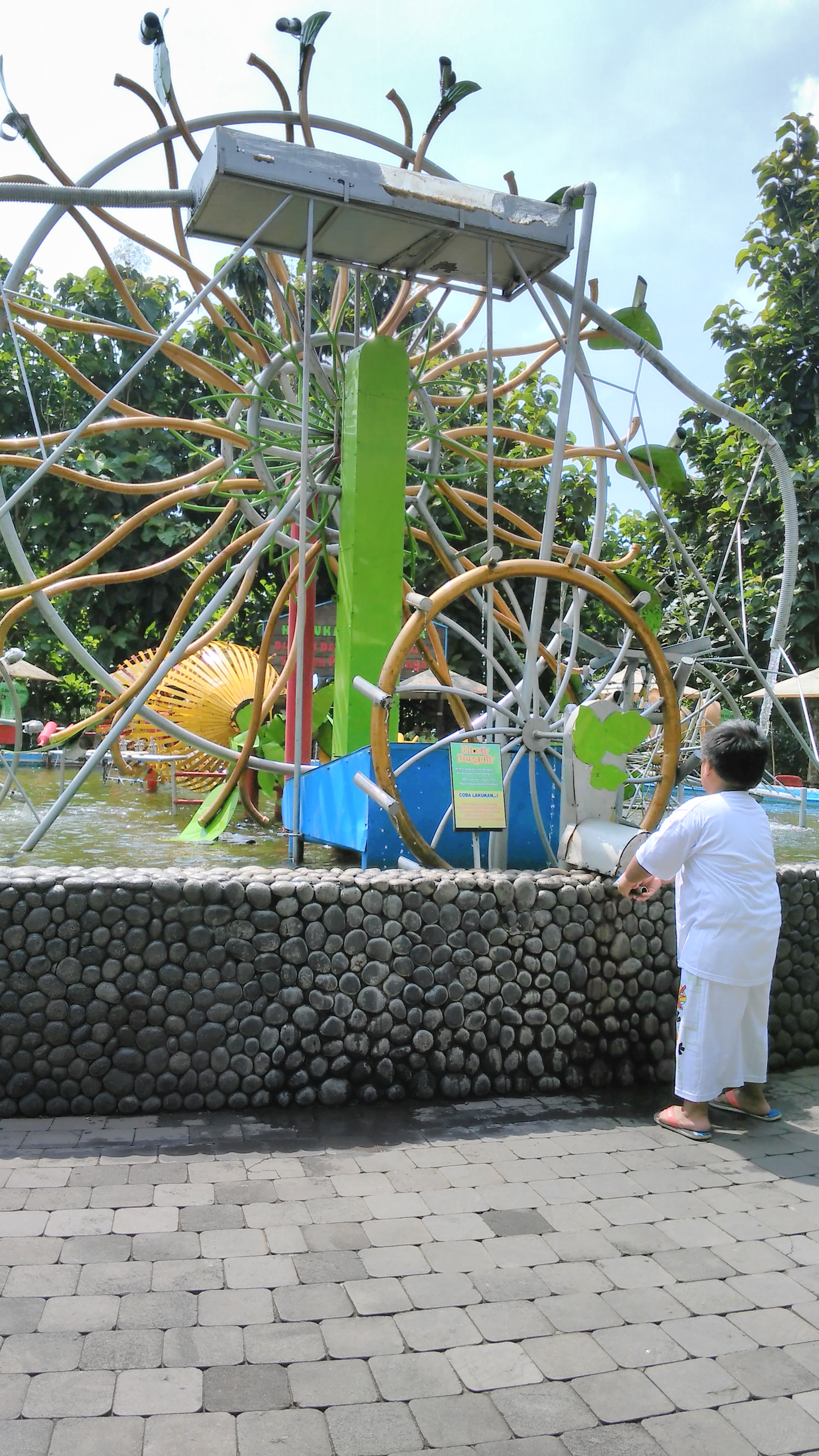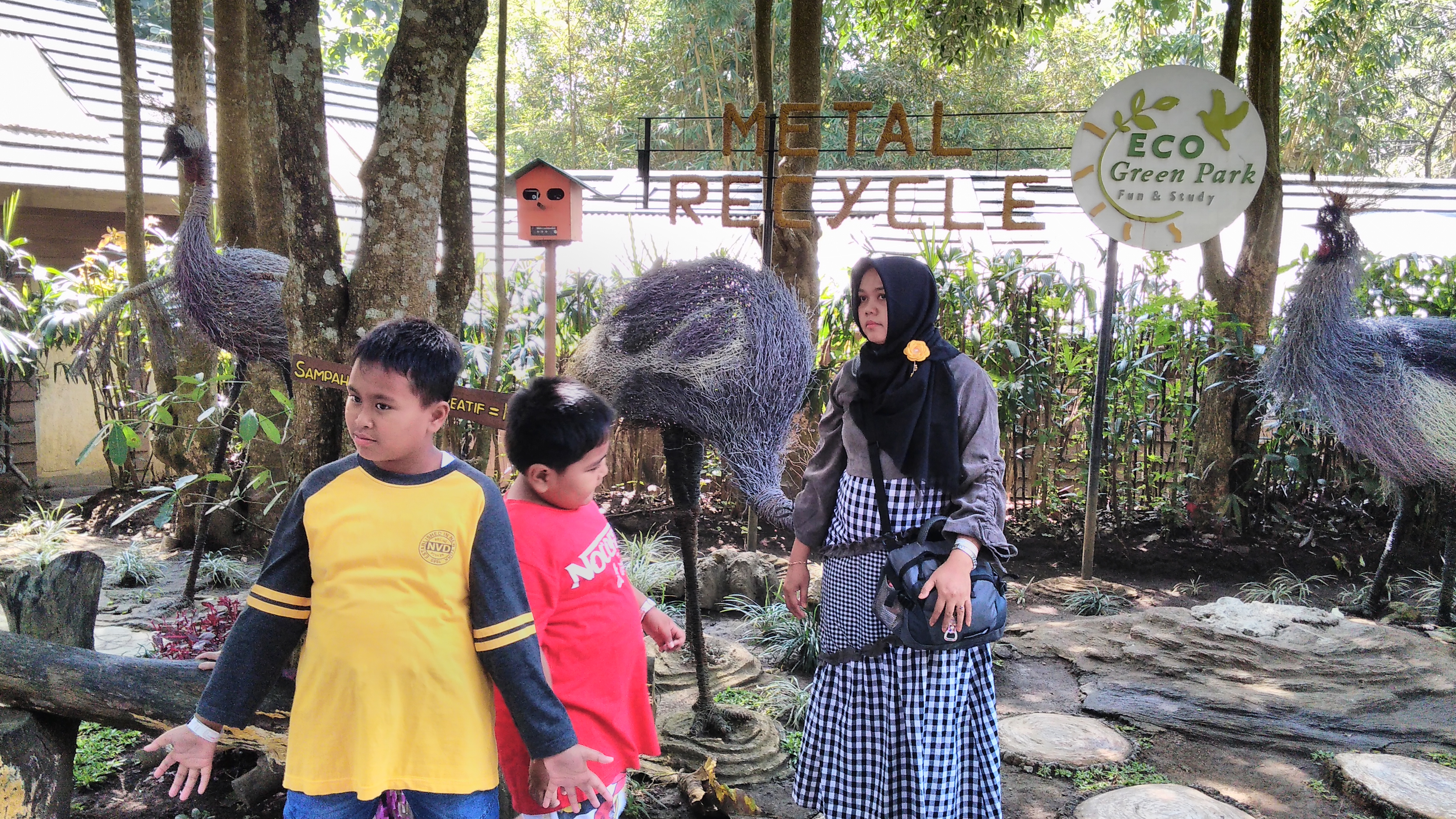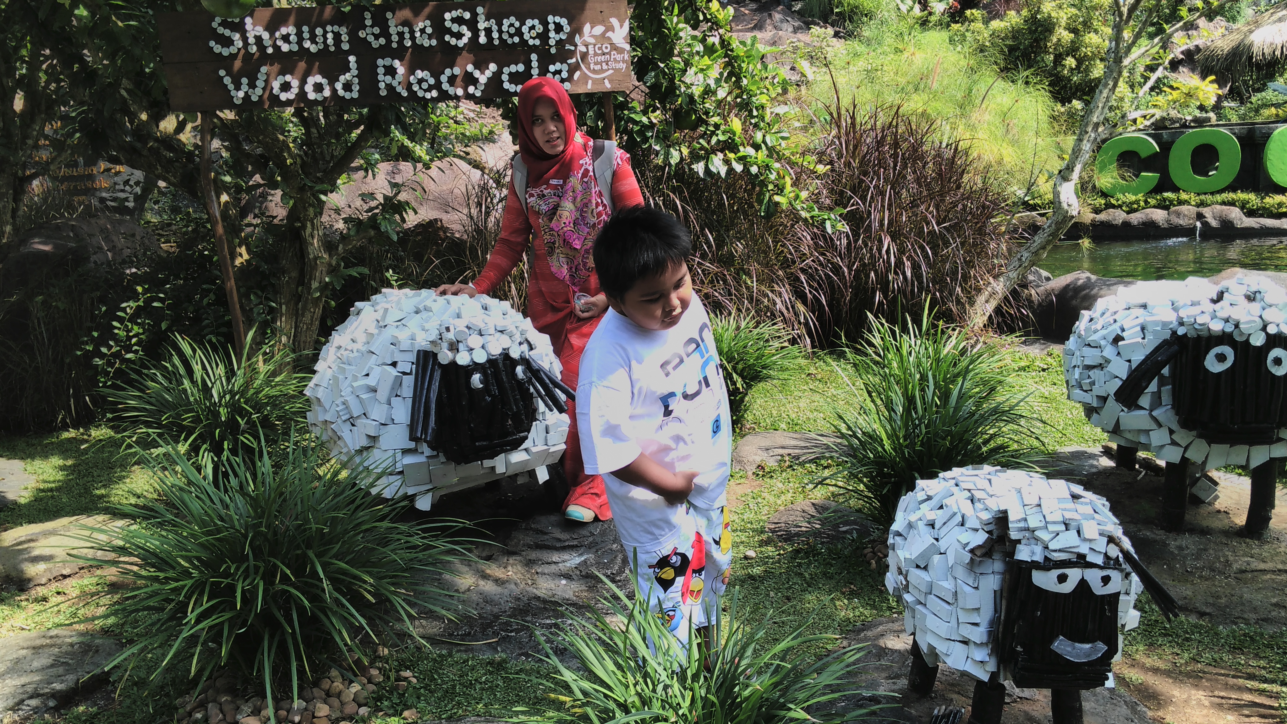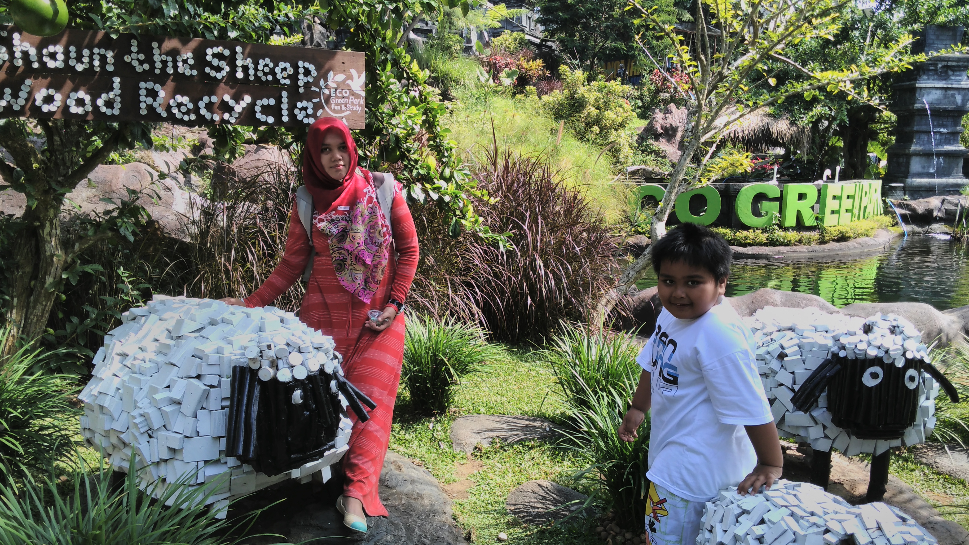 Eco green park menjadi tempat wisata wajib yang selalu dinantikan Haikal kalau ke Batu. Haikal paling suka dengan pertunjukan burung dan air bernyanyinya. Masuk ke eco green Park kita akan disambut dengan kolam ikan dengan miniature candi, shaun the ship yang dibuat kari kayu bekas dan patung gajah dari barang-barang bekas….It’s amazing.