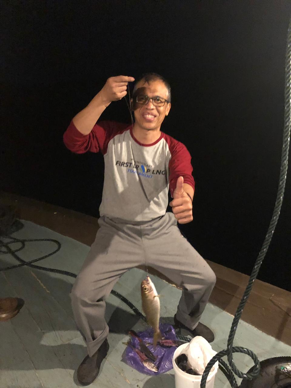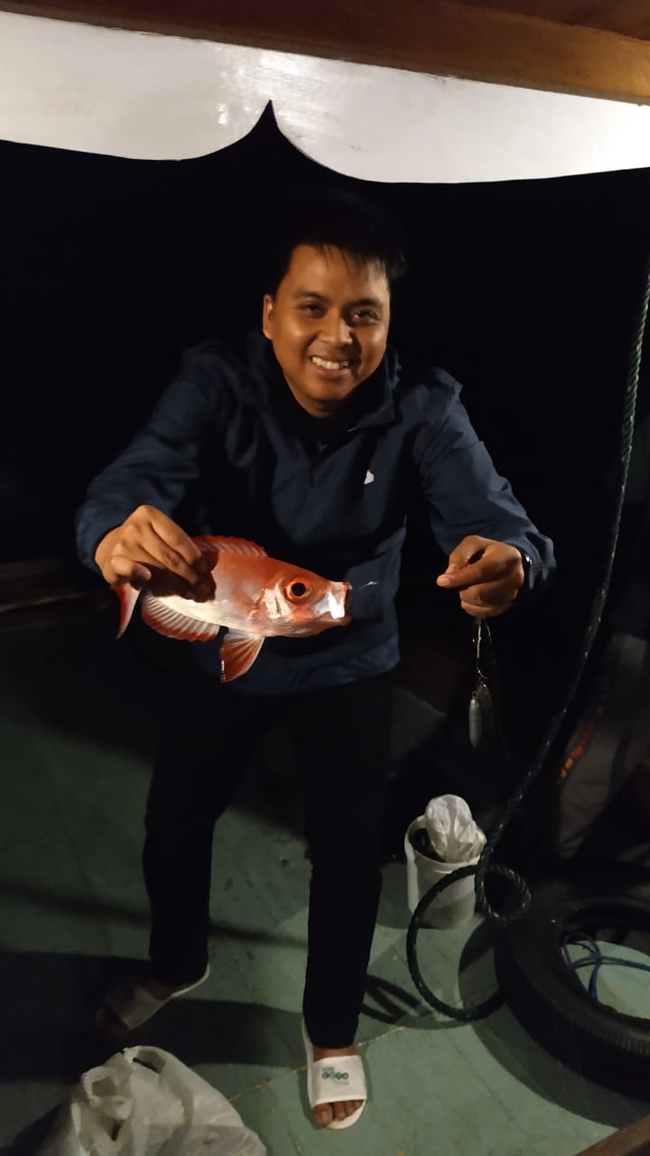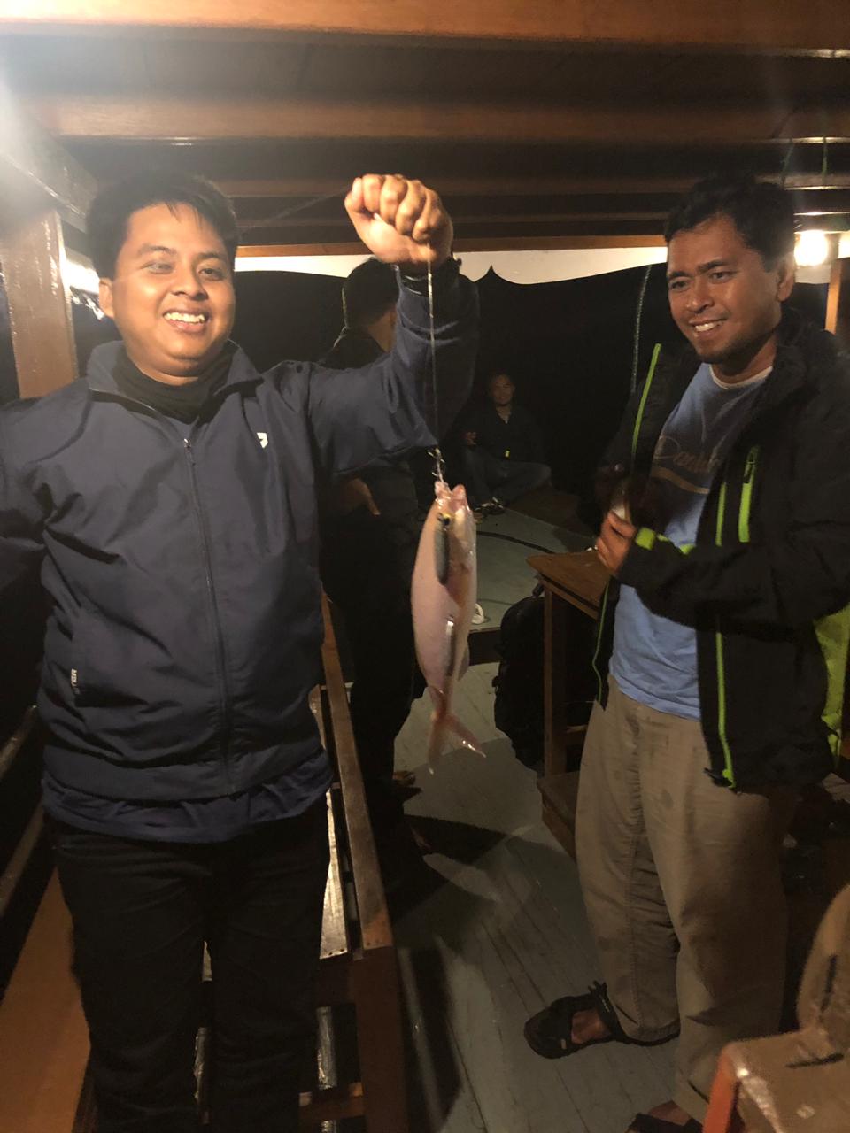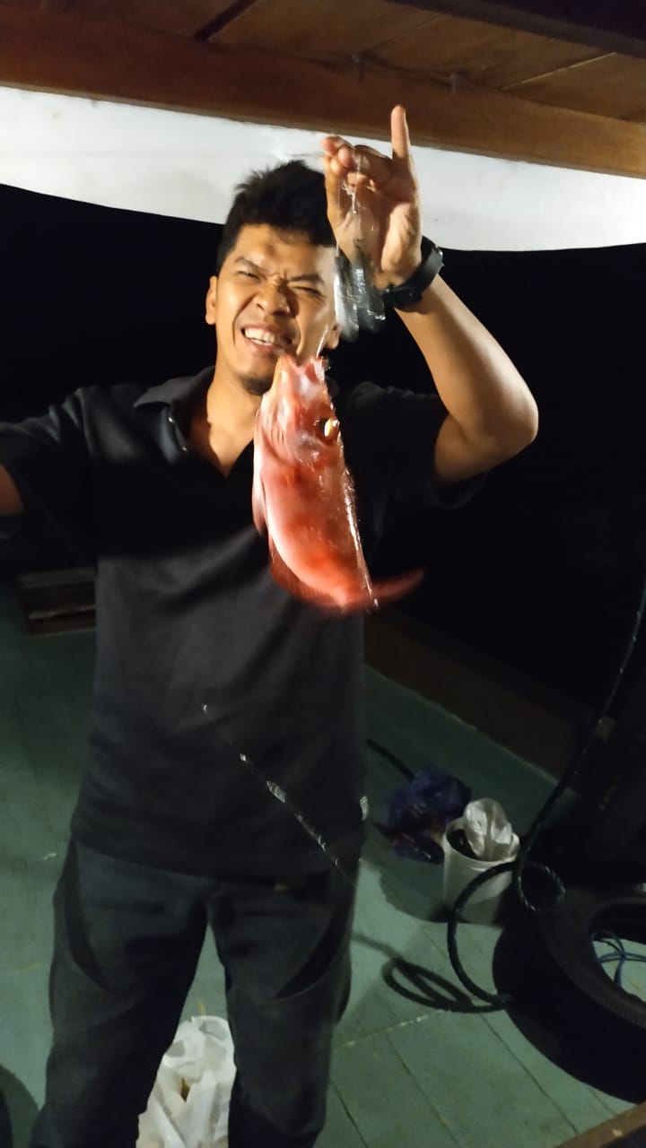 Rencana perjalanan ke pulau peleng kami mulai malam hari dari Kota Luwuk karena kami ingin menghabiskan waktu untuk memancing di tengah lautan sebelum explore keindahan pulau di pagi hari.  Walupun bukan ahli nya mancing mania, ternyata kami bisa dapat ikan loh…yang bisa di bakar nanti buat ganjal perut sebelum dapat jatah sarapan 😃😃. Ndak percaya? Ini loh potonya (kalau ndak ada photo tar dikira HOAX hehehe)